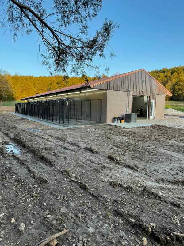 While they focus on building custom homes, the company also constructs custom buildings for home commercial enterprises, ranging from “barndominiums“ to custom workshops, to businesses like the commercial dog kennel pictured here.